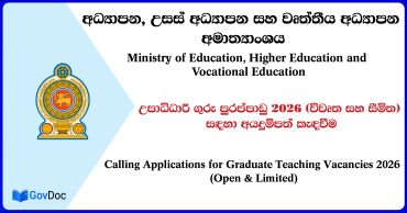 ජාතික අධ්යාපන ආයතනයේ අධ්යයන හා පර්යේෂණ සේවා කාණ්ඩයේ කථිකාචාර්ය – II / අධ්යාපනඥ – II තනතුර සඳහා සුදුසු සුදුසුකම් ලත් අයදුම්කරුවන්ගෙන් අයදුම්පත් කැඳවනු ලැබේ 5 days agoAdd comment
