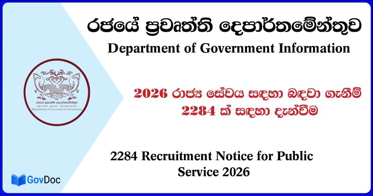 2026 රාජ්‍ය සේවය සඳහා බඳවා ගැනීම් 2284 ක් සඳහා දැන්වීම