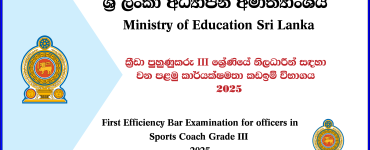 ක්රීඩා පුහුණුකරු III ශ්රේණියේ නිලධාරීන් සඳහා වන පළමු කාර්යක්ෂමතා කඩඉම් විභාගය – 2025 4 months agoAdd comment