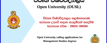 කළමනාකරණ අධ්යයන උපාධි සඳහා අයදුම්පත් කැඳවීම 2025/2026 – විවෘත විශ්වවිද්යාලය 5 months agoAdd comment