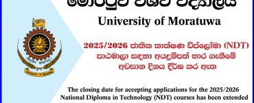 2025/2026 ජාතික තාක්ෂණ ඩිප්ලෝමා (NDT) පාඨමාලා සඳහා අයදුම්පත් භාර ගැනීමේ අවසාන දිනය දීර්ඝ කර ඇත. 3 weeks agoAdd comment