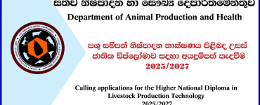 2025/2027 අධ්යයන වර්ෂ සදහා පශු සම්පත් නිෂ්පාදන තාක්ෂණය පිළිබද උසස් ජාතික ඩිප්ලෝමාව සදහා අයදුම්පත් කැදවීම. 2 months agoAdd comment
