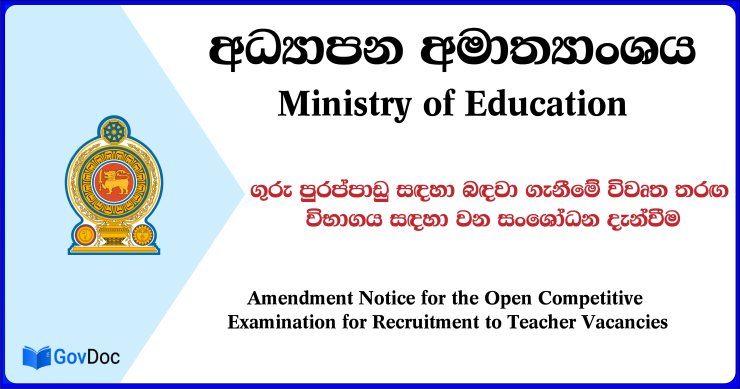 ගුරු පුරප්පාඩු සඳහා බඳවා ගැනීමේ විවෘත තරඟ විභාගය සඳහා වන සංශෝධන දැන්වීම