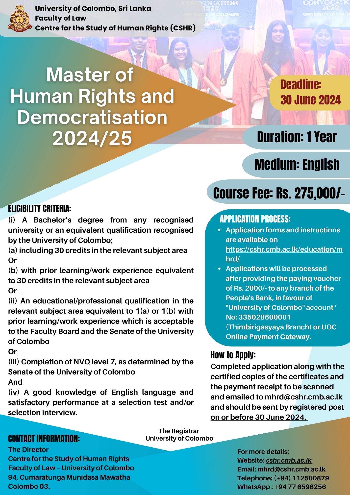 මානව හිමිකම් සහ ප්රජාතන්ත්රීකරණය පිළිබඳ ශාස්ත්රපති 2024/2025 – කොළඹ විශ්වවිද්යාලය