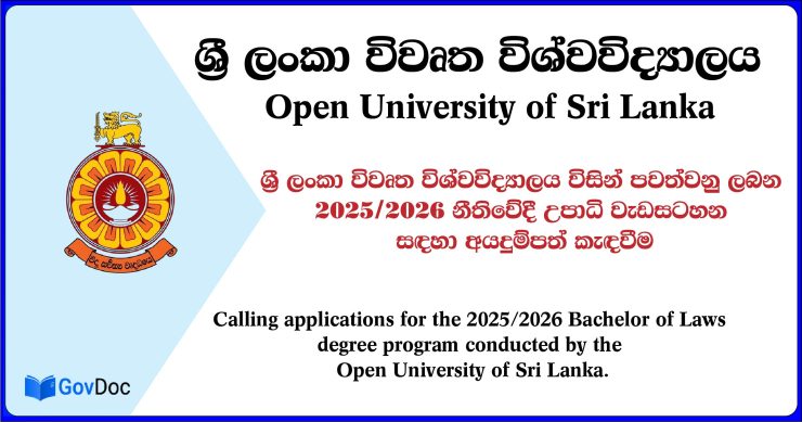 2025/2026 ශ්රී ලංකා විවෘත විශ්වවිද්යාලය විසින් පවත්වනු ලබන නීතිවේදී උපාධි වැඩසටහන සඳහා අයදුම්පත් කැඳවීම.