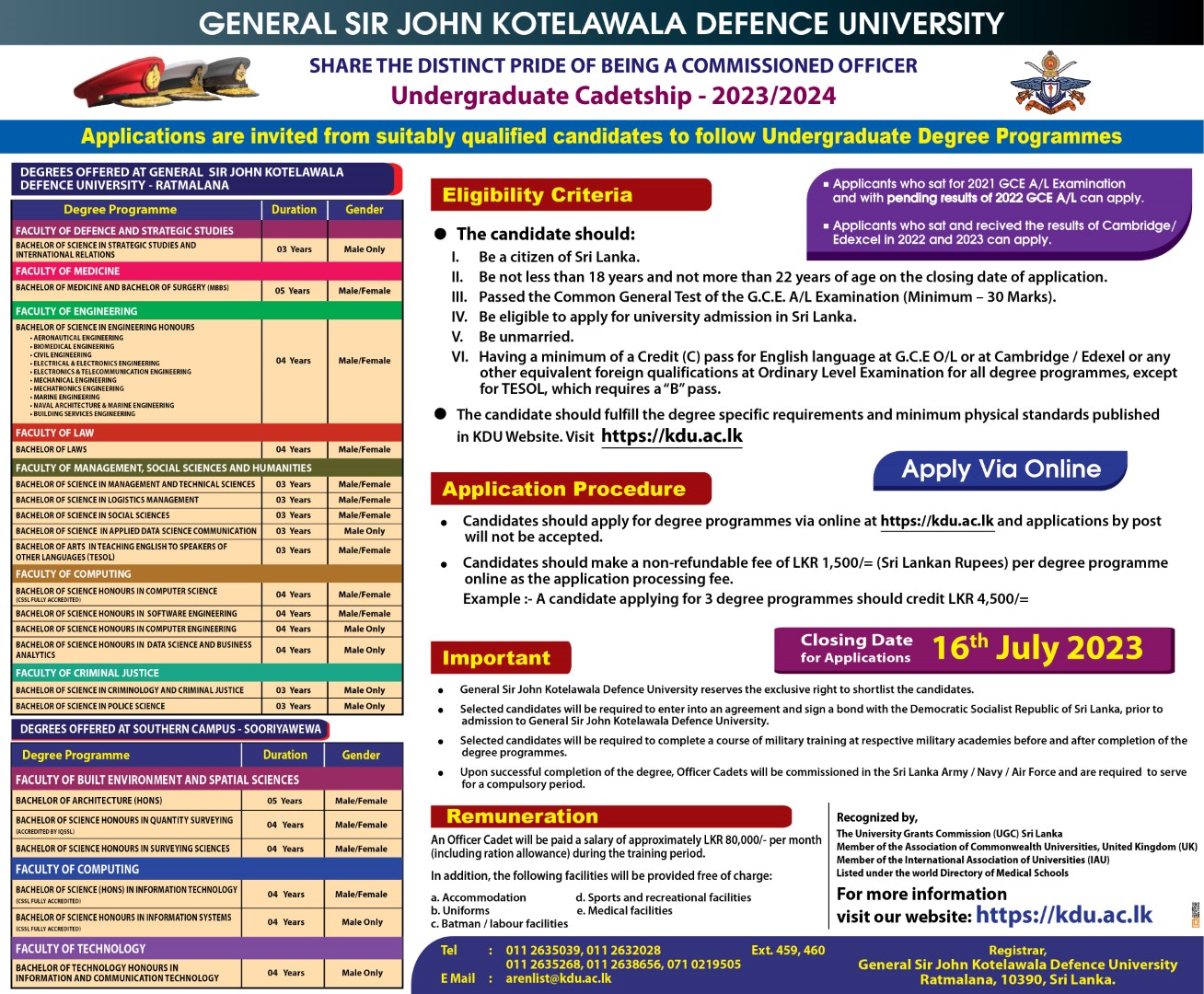 2023/2024 උපාධි අපේක්ෂක ශිෂ්‍යභටත්වය සඳහා අයදුම්පත් කැඳවීම