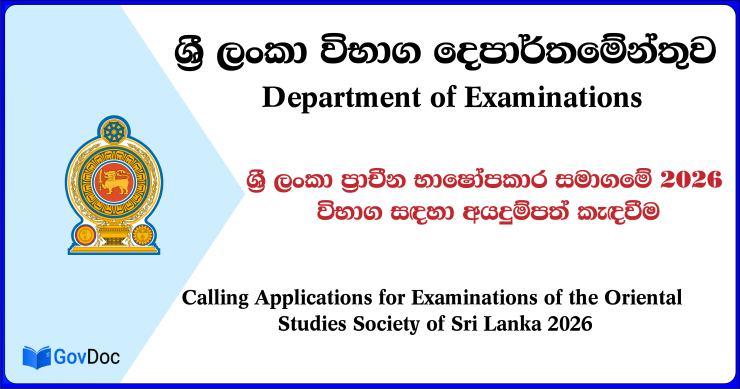 2026 අප්රේල් මාසයේදී පැවැත්වීමට නියමිත ශ්රී ලංකා ප්රාචීන භාෂෝපකාර සමාගමේ විභාග සඳහා මාර්ගගත අයදුම්පත් කැඳවනු ලැබේ.
