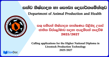 2025/2027 අධ්යයන වර්ෂ සදහා පශු සම්පත් නිෂ්පාදන තාක්ෂණය පිළිබද උසස් ජාතික ඩිප්ලෝමාව සදහා අයදුම්පත් කැදවීම. 2 months agoAdd comment