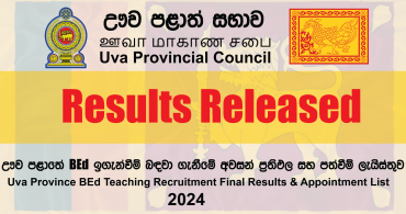 ඌව පළාතේ BEd ඉගැන්වීම් බඳවා ගැනීමේ අවසන් ප්රතිඵල සහ පත්වීම් ලැයිස්තුව – 2024 May 15, 2024Add comment