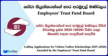 සේවා නියුක්තයන්ගේ භාර අරමුදල් මණ්ඩලය විසින් පිරිනමනු ලබන 2025 (2026) විශ්ව යාත්රා ශිෂ්යත්ව සඳහා අයදුම්පත් කැඳවීම 1 month agoAdd comment