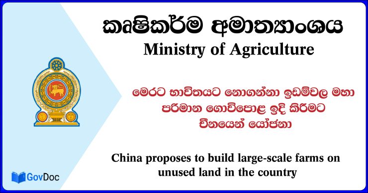 මෙරට භාවිතයට නොගන්නා ඉඩම්වල මහා පරිමාන ගෙ‍ාවිපොළ ඉදි කිරීමට චීනයෙන් යෝජනා