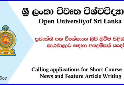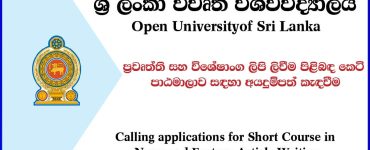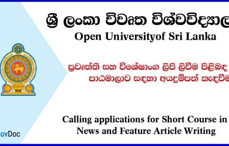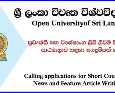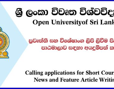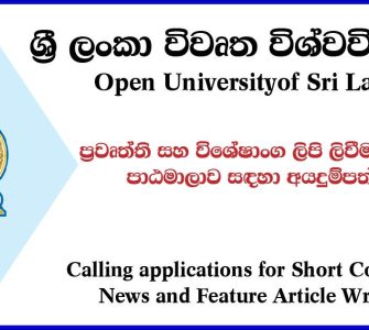 ප්රවෘත්ති සහ විශේෂාංග ලිපි ලිවීම පිළිබඳ කෙටි පාඨමාලාව සඳහා අයදුම්පත් කැඳවීම. ශ්රී ලංකා විවෘත විශ්වවිද්යාලය විසින් පවත්වනු ලබන ප්රවෘත්ති සහ විශේෂාංග ලිපි ලිවීම පිළිබඳ කෙටි පාඨමාලාව සඳහා අයදුම්පත් කැඳවීමසිඳුවේ. කාලය:...