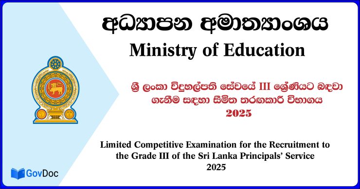 ශ්රී ලංකා විදුහල්පති සේවයේ III ශ්රේණියට බඳවා ගැනීම සඳහා වන සීමිත තරඟකාරී විභාගය 2025