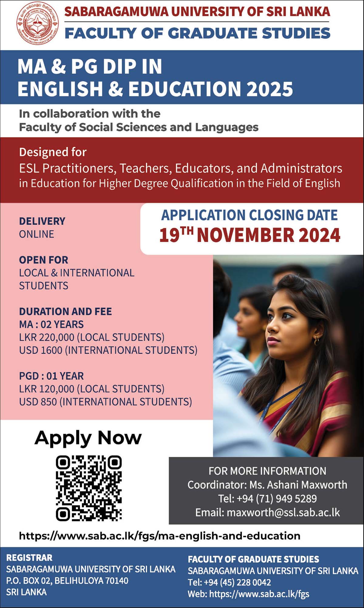 More Details : MA & PGDip in English and Education (2025) – Sabaragamuwa University of Sri Lanka