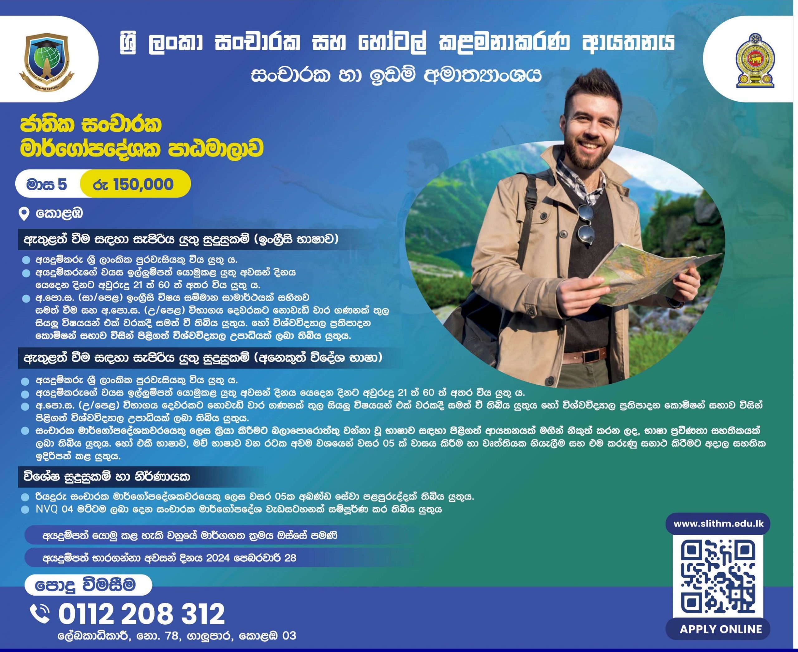 ජාතික සංචාරක මාර්ගෝපදේශ පුහුණු වැඩසටහන සඳහා ශ්රී ලංකා සංචාරක හා හෝටල් කළමනාකරණ ආයතනය, සංචාරක හා ඉඩම් අමාත්යාංශයෙන් අයදුම්පත් කැඳවනු ලැබේ.