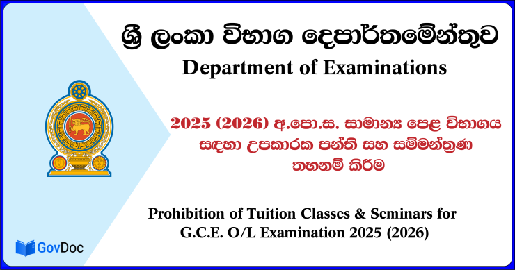 2025 (2026) අ.පො.ස. සාමාන්‍ය පෙළ විභාගය සඳහා උපකාරක පන්ති සහ සම්මන්ත්‍රණ තහනම් කිරීම