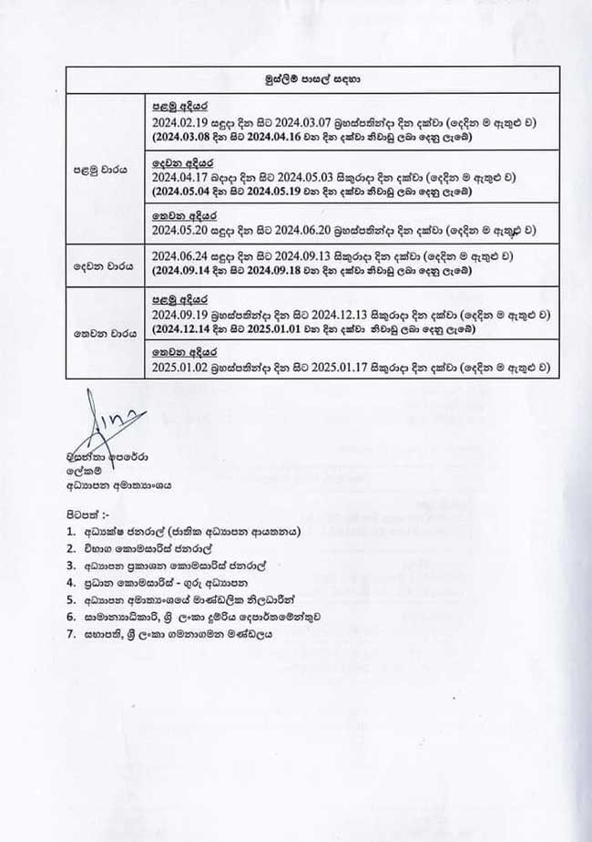 2024 සංශෝධිත පාසල් වාර සටහන නිකුත් කෙරේ