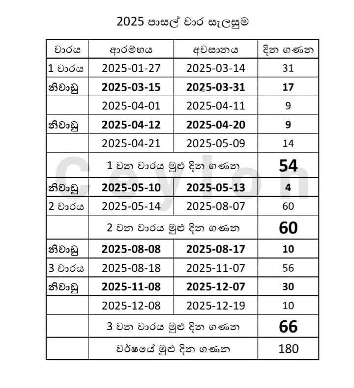 - පාසල් වාර කාලසටහන 2025 – අධ්යාපන අමාත්යාංශය