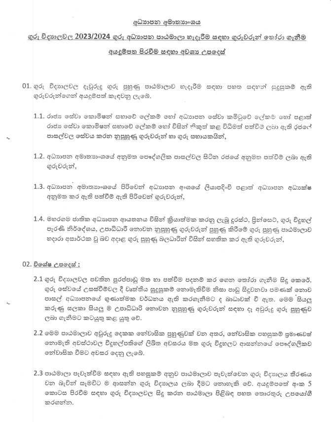 ගුරු අධ්යාපන පාඨමාලා සඳහා ගුරුවරුන් තෝරා ගැනීම – 2023/2024