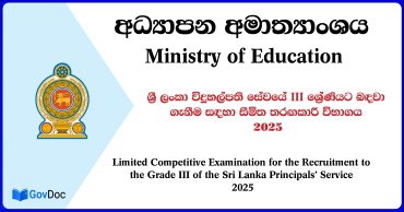 ශ්රී ලංකා විදුහල්පති සේවයේ III ශ්රේණියට බඳවා ගැනීම සඳහා වන සීමිත තරඟකාරී විභාගය 2025 2 weeks agoAdd comment